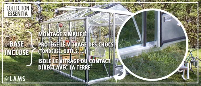 - Dankzij de basis wordt de montage van de serre vereenvoudigd.