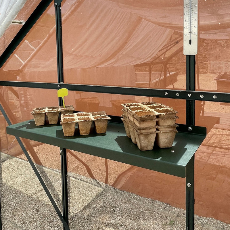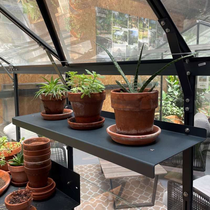 Étagère fixe (non rabattable), compatible uniquement avec les serres de la collection Natura (Allium, Carvi, Laurus, Aloé et Mélissa 4,90m² + 7,20 m²).