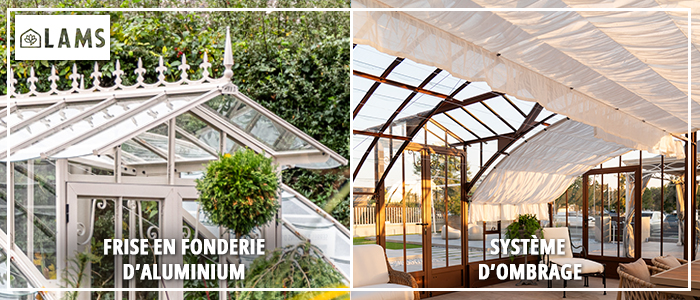 Equipez votre serre à l'ancienne LAMS AMBOISE selon vos envies et suivant la configuration de votre jardin grâce aux options que nous vous proposons (porte et lucarnes supplémentaires, coloris, ombrage...). Pensez à consulter notre page accessoires pour l'aménagement intérieur de votre jardin d'hiver AMBOISE.