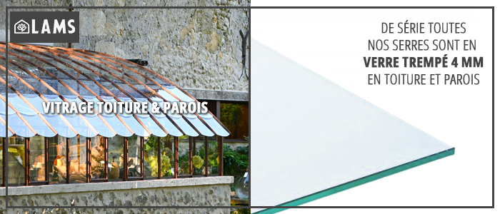 Le vitrage en verre trempé de 4 mm d'épaisseur est fixé par des clips en inox pour une pose facile. La toiture arrondie est composée de petites tuiles en verre trempé pour préserver le charme des serres d'autrefois.