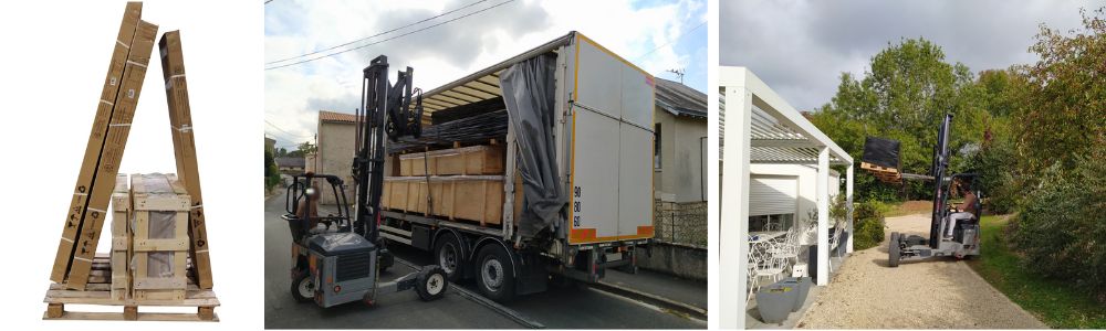 Palettisation des serres Natura (photo 1), Azura et serres à l'ancienne (photos 2 et 3).