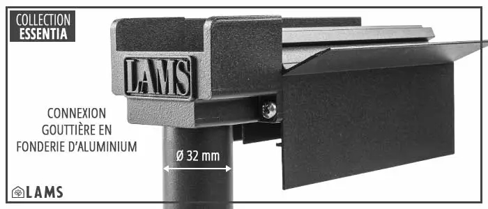Nous sommes soucieux des finitions et de la qualité de nos serres et jardins d'hiver : Afin de garantir longévité et qualité à nos produits, nous équipons nos serres de jardin de connecteurs de gouttière en fonderie d'aluminium, ainsi que des descentes en tube aluminium de Ø 32 mm, laquées à la couleur de la serre. Elles sont solides et suffisamment larges pour récupérer l'eau de pluie. Pourquoi ne pas installer un récupérateur d'eau ?