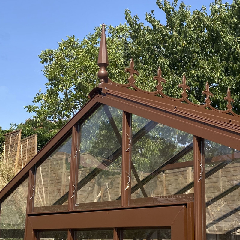 Frise de faîtage en fonderie d'aluminium et laquée à la couleur de votre serre à l'ancienne Classique avec chien-assis.