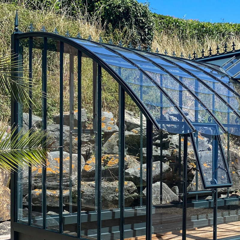 La frise s’installe sur la faîtière de votre serre pour lui apporter un style victorien. Elle est composée de moulures en forme de fleurs de lys. Toute la frise est en fonderie d’aluminium et laquée à la couleur de votre serre*.