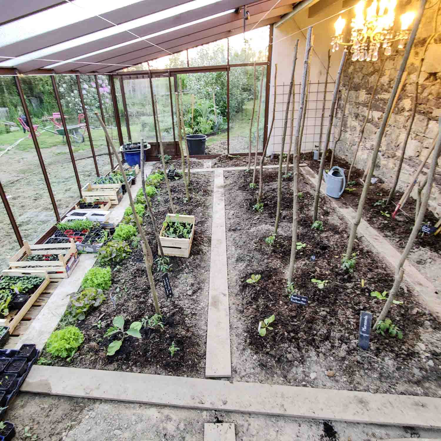 Les deux dernières solutions d'implantation vous permettent de cultiver vos légumes et plantes en pleine terre, à l'abri sous votre serre.