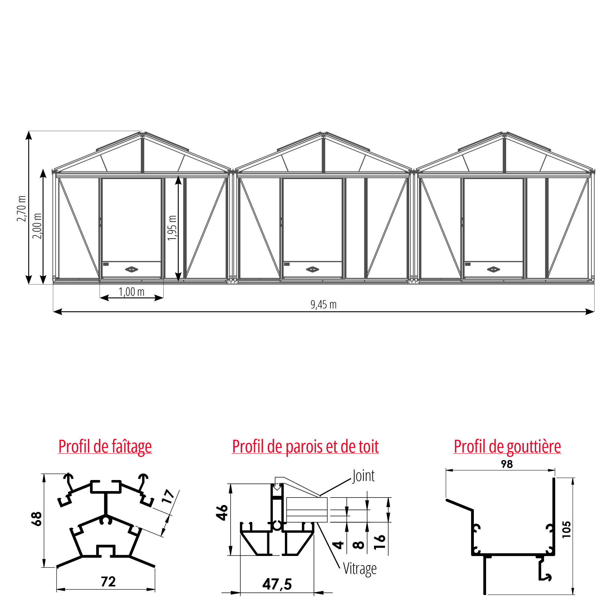 Dimensions de la serre de jardin SUPRA 3 Chapelles