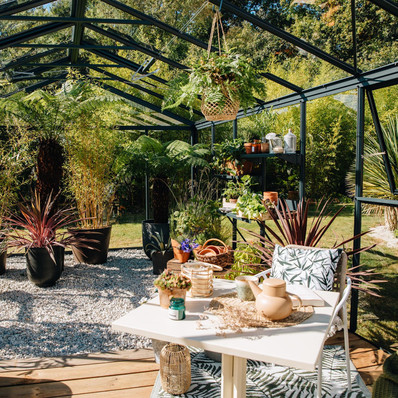 La dalle béton vous permet d'isoler votre serre de la terre : Faites de votre serre un véritable jardin d'hiver ou une nouvelle pièce de vie lumineuse et confortable, en y installant du mobilier pour profitez du cadre verdoyant de votre jardin.